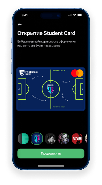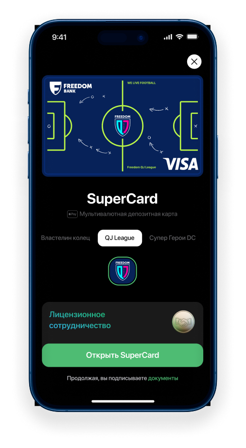 Алдымен Freedom Bank бөлімшесінде Student немесе Power Card картасын жабу қажет, содан кейін QJ League дизайны бар картаны ашуға болады.